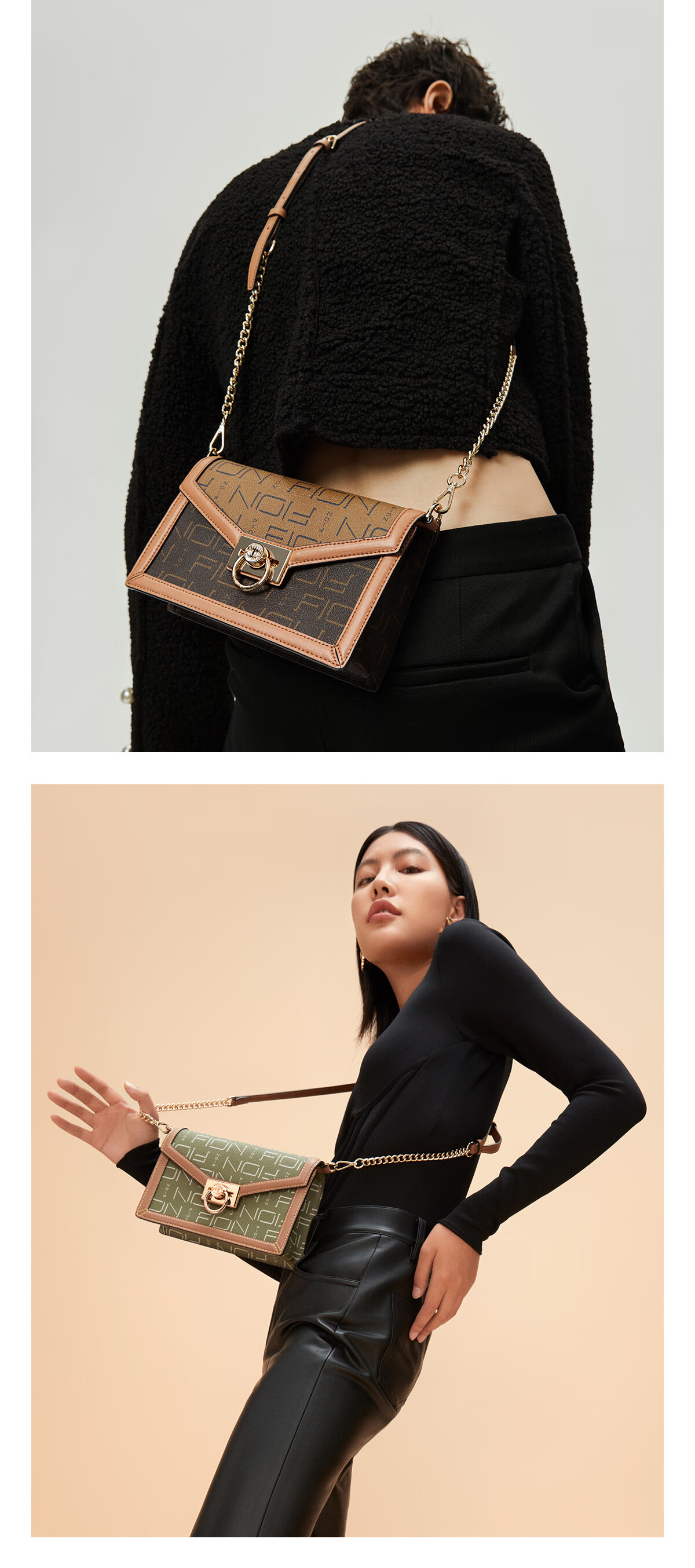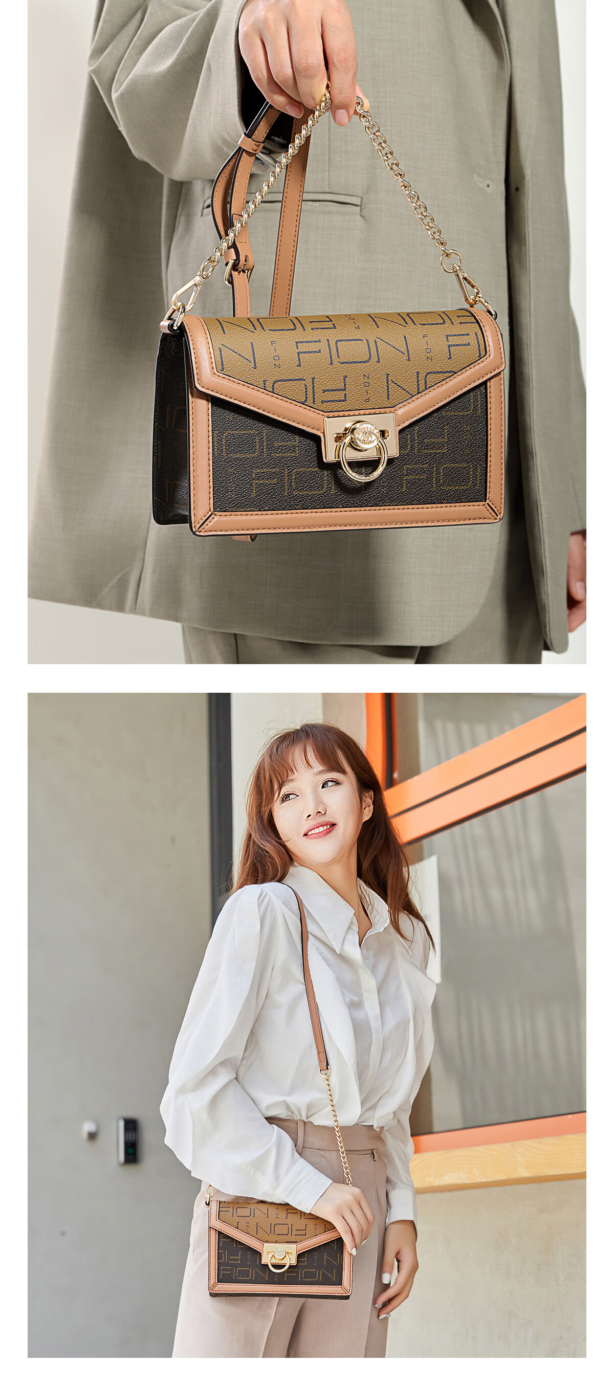 菲安妮(FION)经典老花单肩包包2024新款百搭轻奢斜挎包女 送老婆女友礼物
