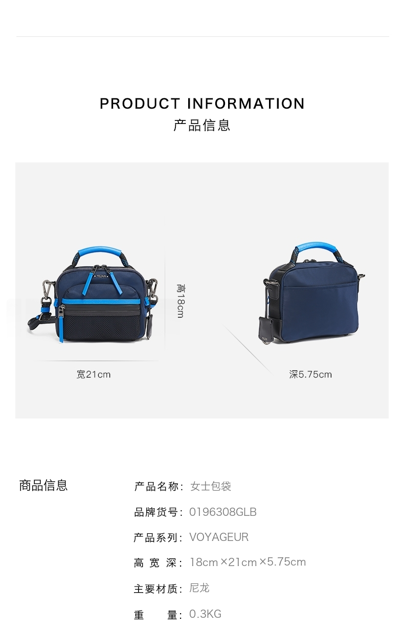 TUMI/途明Voyageur系列冰河蓝时尚女士单肩斜挎背包 冰川蓝/0196308GLB