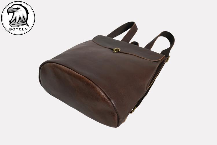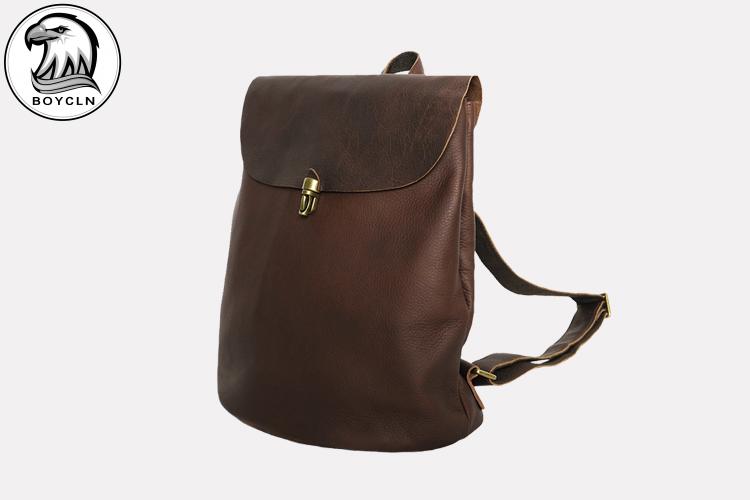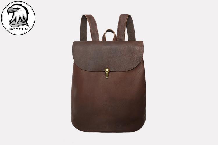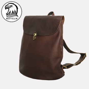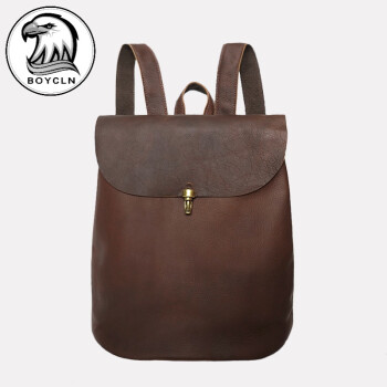 BOYCLN品牌 双肩包女 头层牛皮电脑书包 手工真皮小背包简约休闲旅行包 复古咖